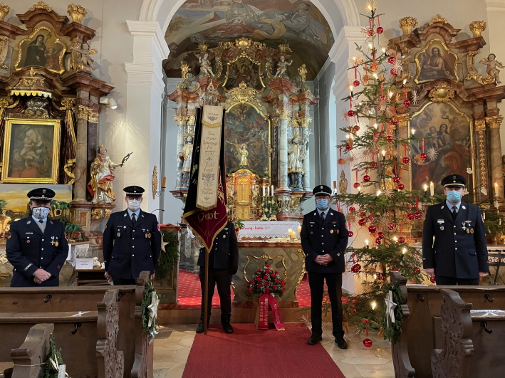 In Gedenken an unsere verstorbenen Mitglieder haben wir eine Blumenschale vor dem Altar in der Kirche abgelegt und eine Abordnung der Vorstände und Kommandanten mit der Fahne am Gottesdienst in St. Emmeram teilgenommen. An dieser Stelle ein herzliches Vergelt`s Gott an Herrn Pfarrer i.R. Bergmann für die feierliche Gestaltung des Gedenkgottesdienstes.