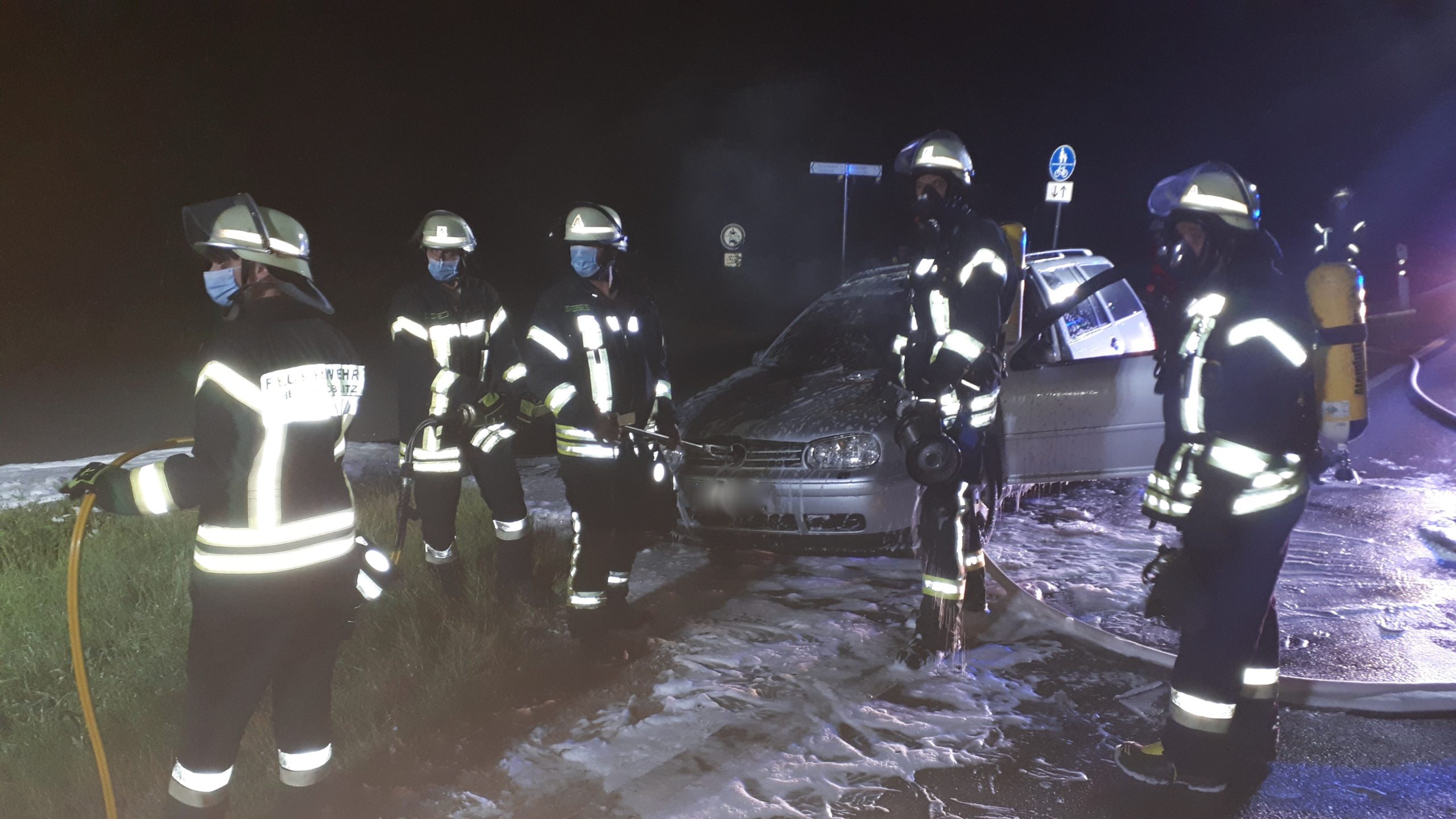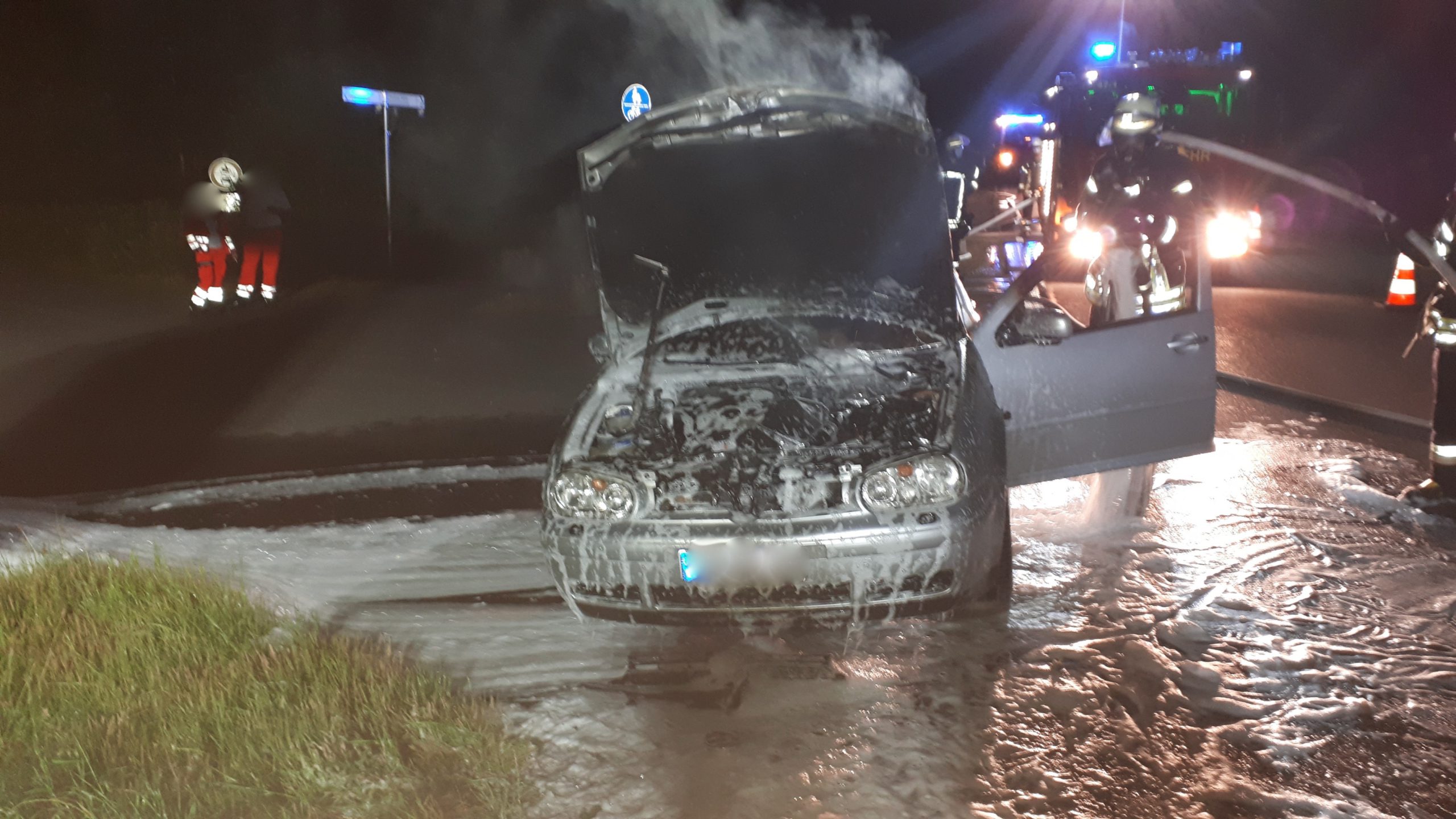 Während der Fahrt hatte der Fahrer Brandgeruch im Fahrzeug wahrgenommen und sein Fahrzeug am Seitenrand abgestellt. Kurz darauf schlugen Flammen aus dem Motorraum und griffen über das Armaturenbrett auf den Innenraum über.