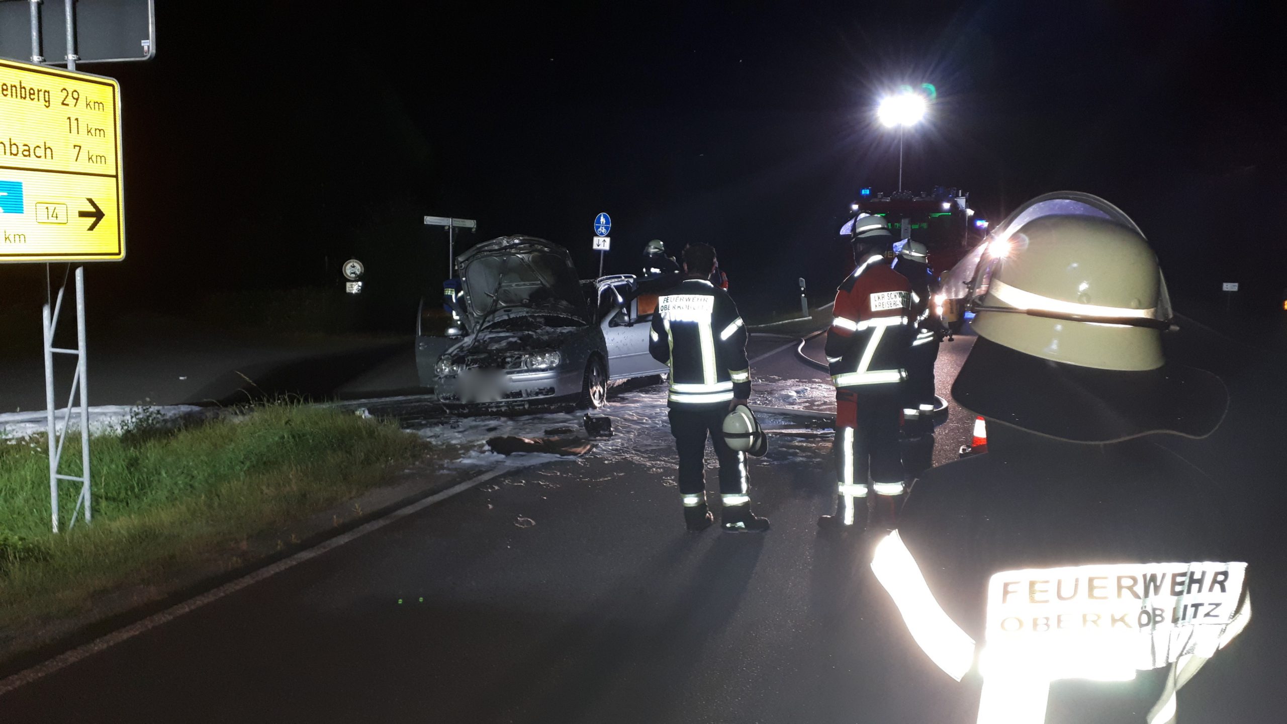 FLE I Brand PKW auf der B14/Höhe der Abzweigung nach Neunaigen