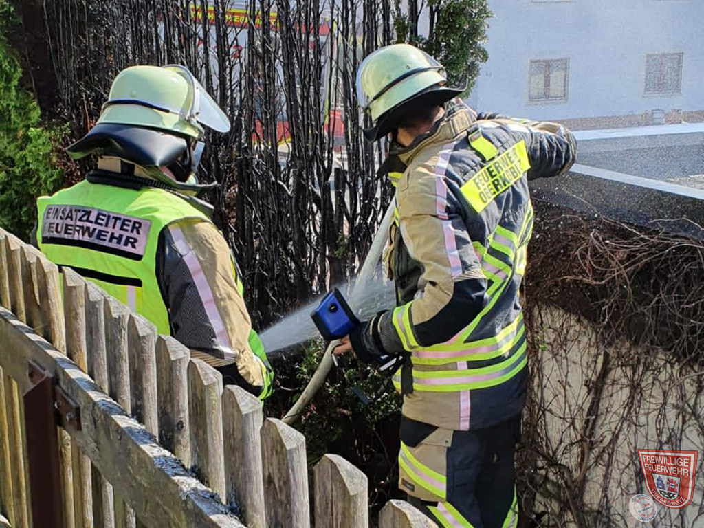 Im Ortsteil Oberköblitz war eine Hecke in Brand geraten. Wir löschten die Hecke ab. Abschließend erfolgte noch eine Kontrolle mittels Wärmebildkamera des betroffenen Bereichs.