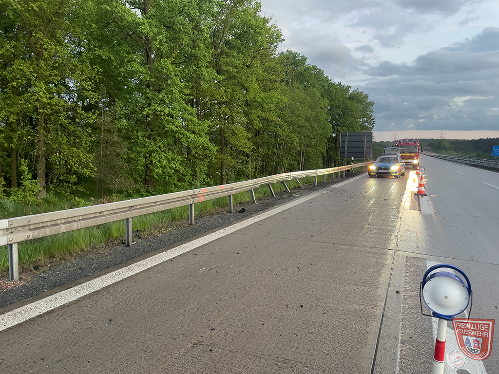 Auf der Bundesautobahn BAB93, zwischen den Anschlussstellen Wernberg-Köblitz und Luhe-Wildenau, in Fahrtrichtung Hof, ereignete sich ein Verkehrsunfall mit einem PKW. Wir übernahmen die Verkehrsabsicherung und reinigten die Fahrbahn.