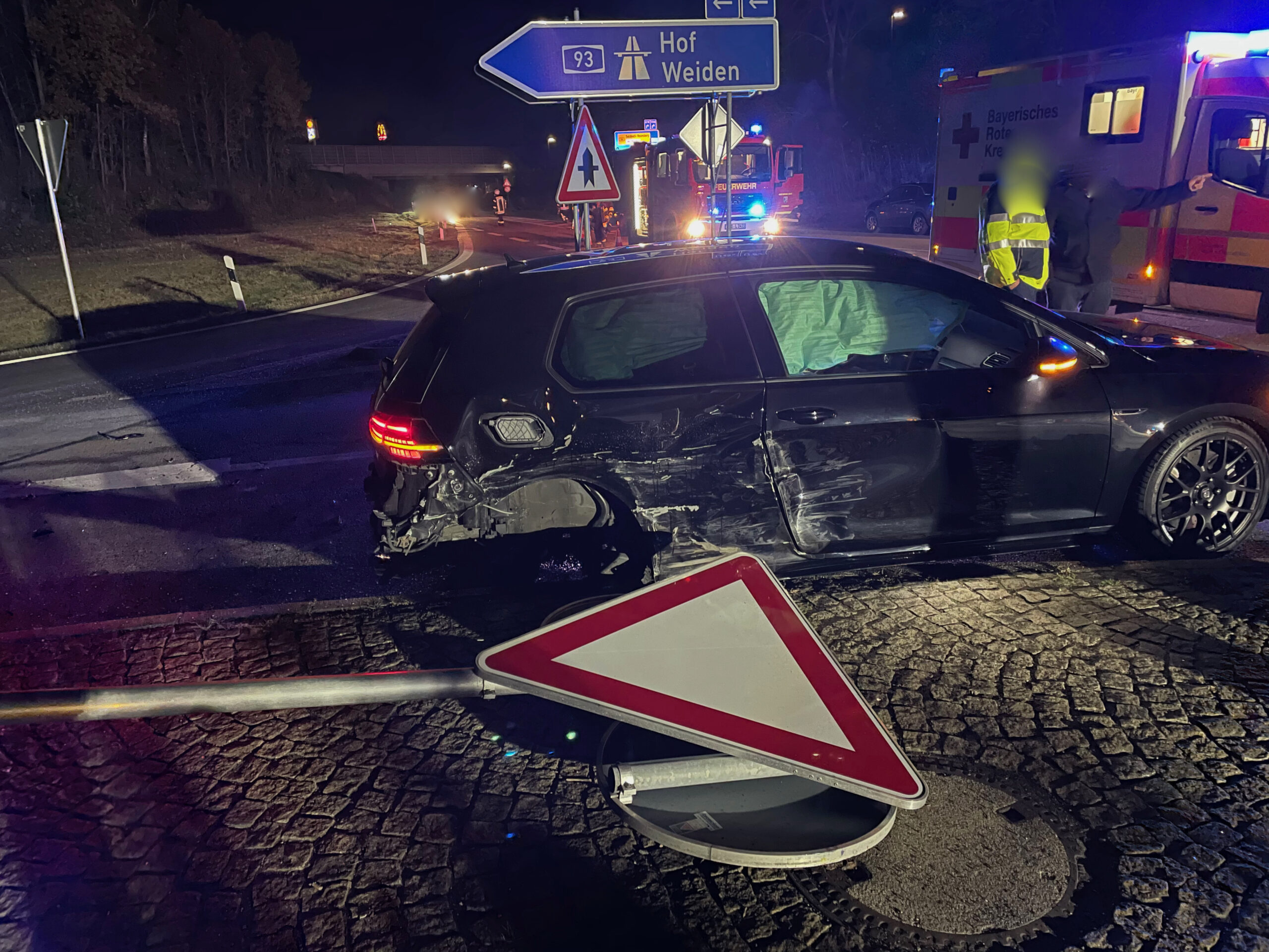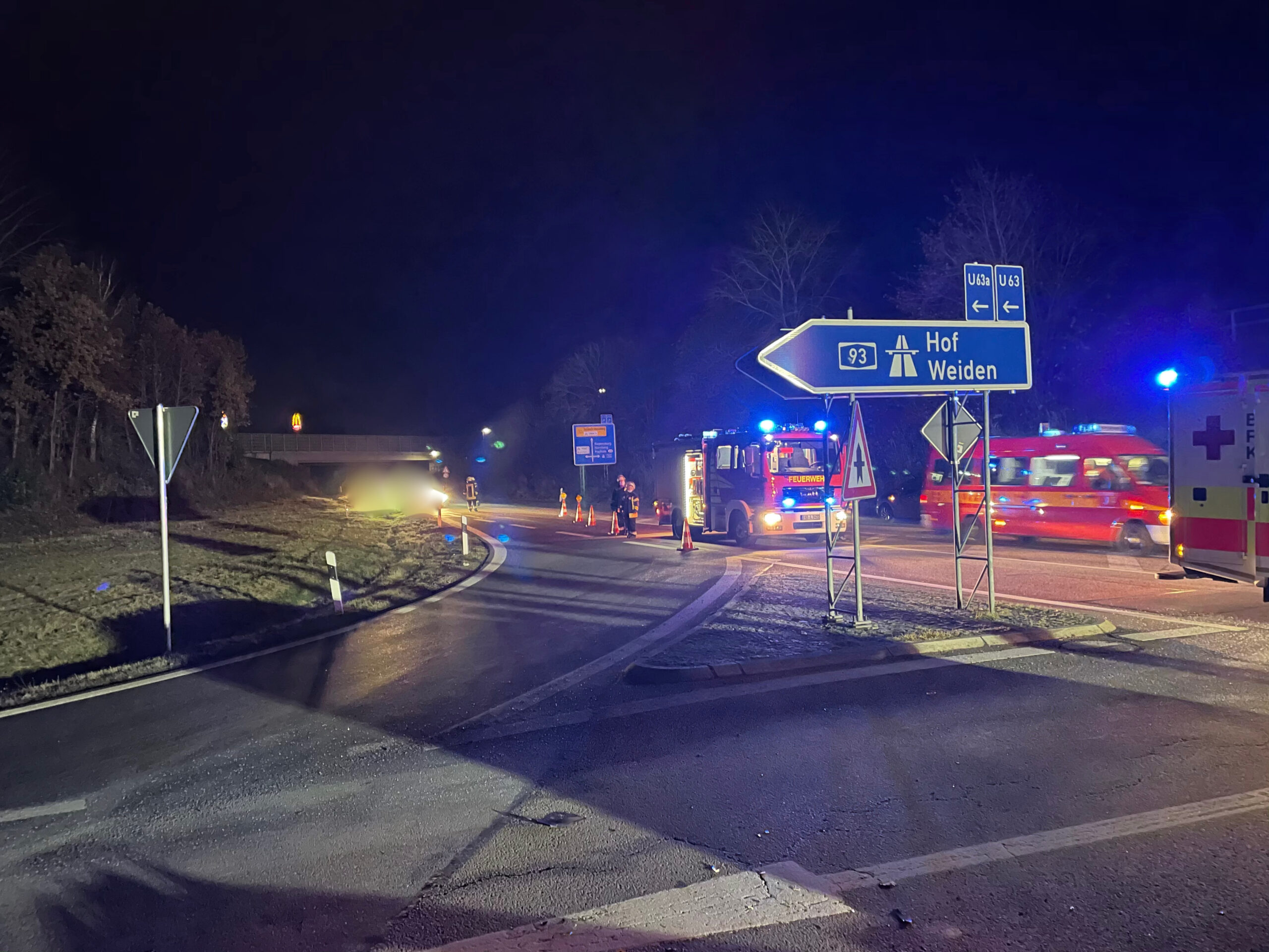 Wir wurden zu einem VU mit zwei PKW auf die Staatsstraße 2399 alarmiert. Hier hatte sich ein Verkehrsunfall mit zwei PKW ereignet. Ein PKW wollte in die A93 in Richtung Weiden abbiegen hierbei übersah er einen PKW der auf der die B14 unterwegs war. Im Einmündungsbereich zur A93 kam es dann zum Zusammenstoß. Wir sicherten die Unfallstelle ab und übernahmen die Verkehrslenkung und Fahrbahnreinigung.