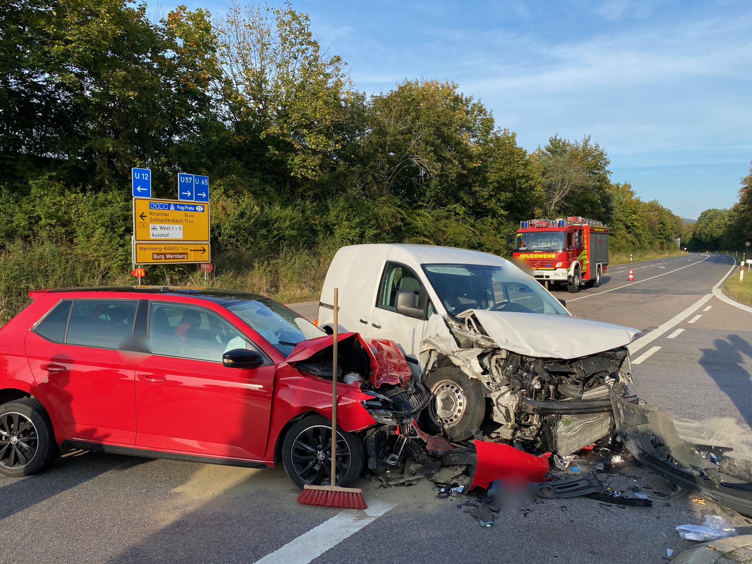 THL I VU mit mehreren PKW auf Höhe der Autobahnauffahrt A93 in Ri. Weiden