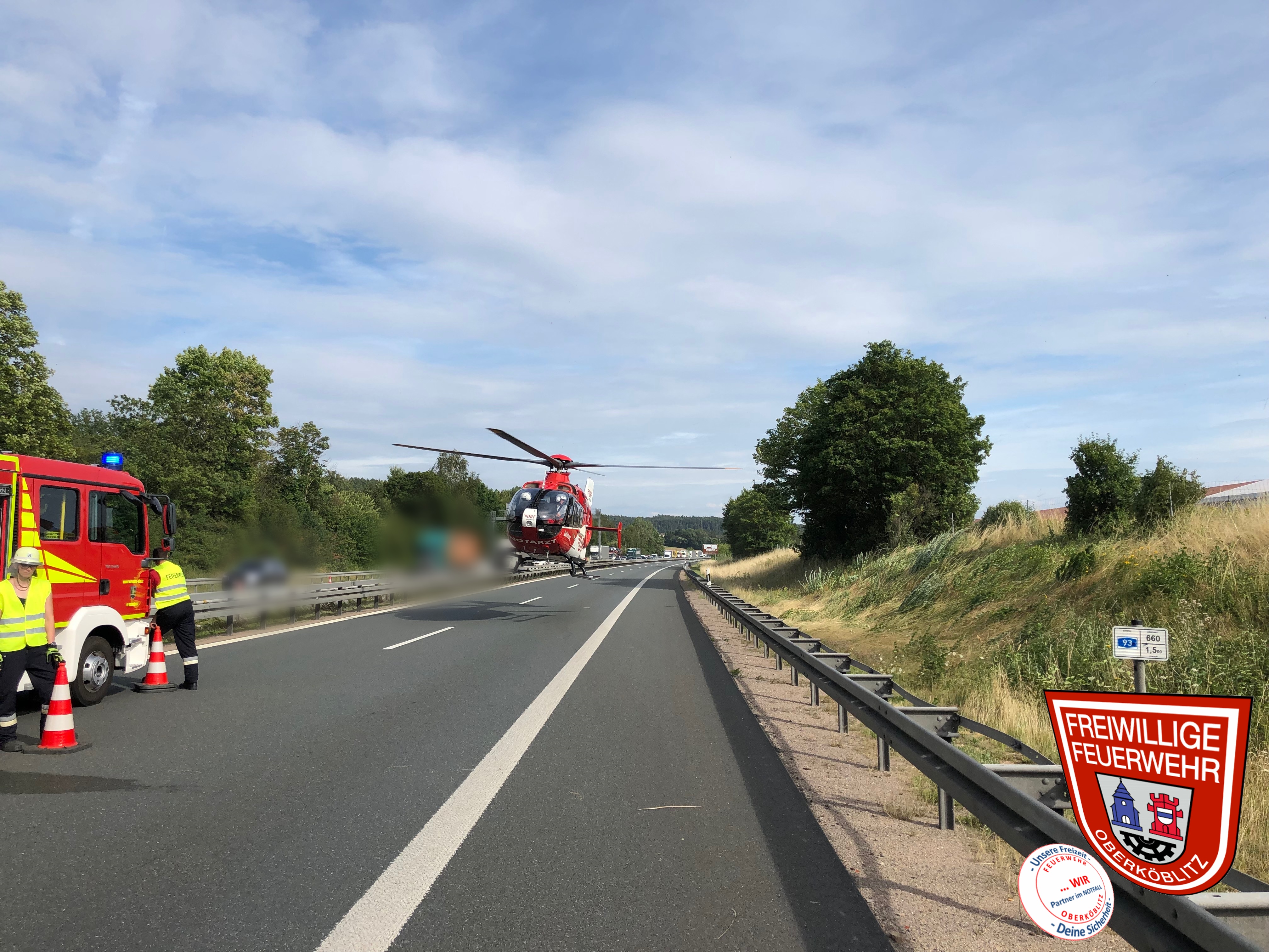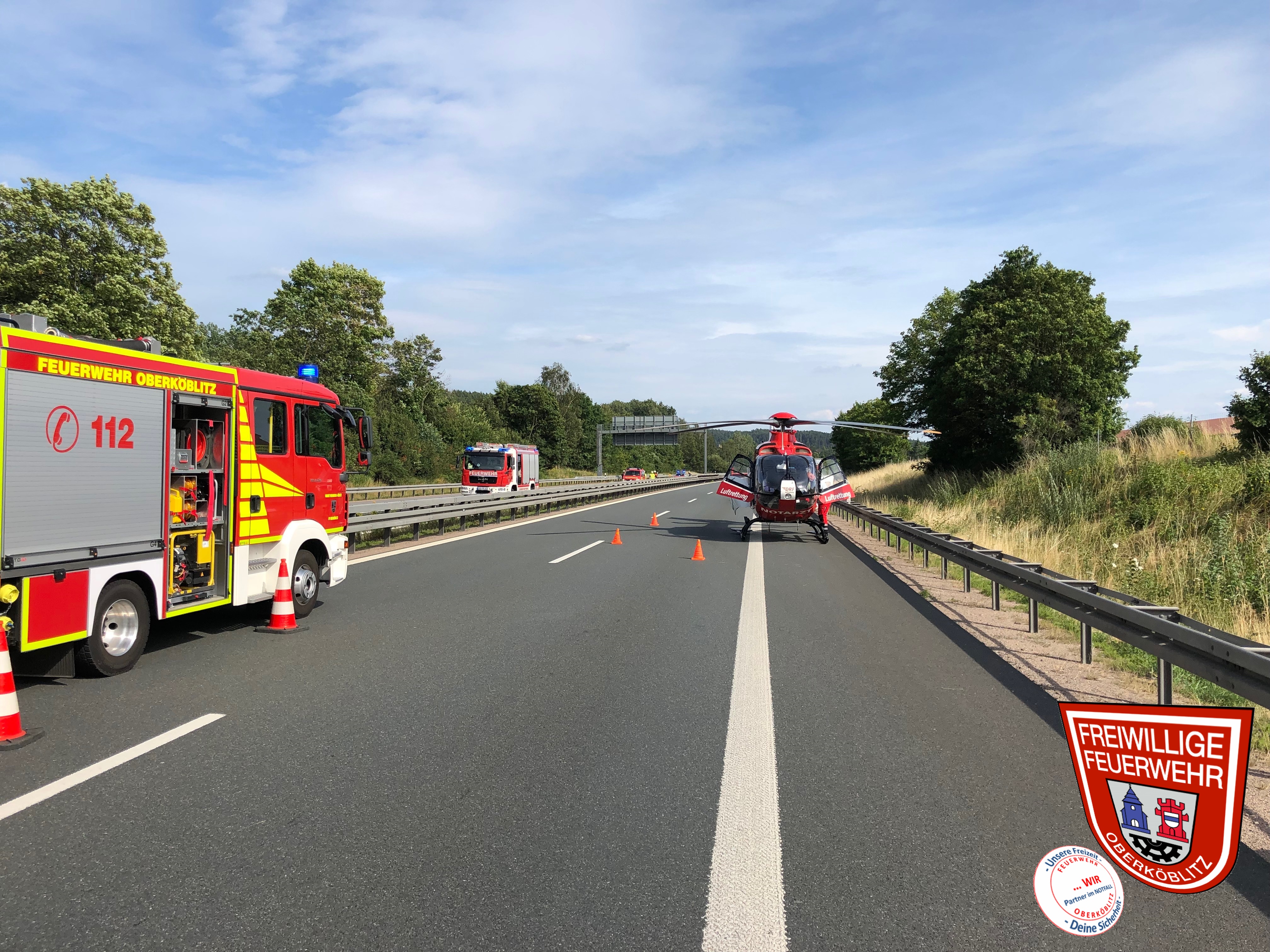 Heute wurden wir von der ILS Amberg zu einen nicht alltäglichen Einsatz auf die A93 alarmiert. Die Erstmeldung lautete für uns „Verkehrsklenkung auf der A93 bewusstlose Person auf der Fahrbahn“. Während der Anfahrt wurden wir von der Leitstelle informiert das es sich um eine laufende Reanimation an der Einsatzstelle handelte. Beim Eintreffen unterstützten wir den Rettungsdienst dabei und sperrten die Fahrbahn in Fahrtrichtung Süden auf der A93 komplett. Aufgrund der Landung des Rettungshubschraubers wurde ebenfalls die Überholspur auf der Gegenfahrbahn durch die FF Pfreimd mit ihrem VSA gesperrt. Nach über 1 Stunde konnten die Fahrbahnen für den Verkehr wieder freigegeben werden.