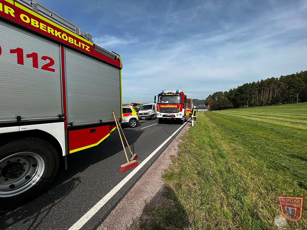 Auf der Kreisstraße SAD 25, ereignete sich zwischen den Ortsteilen Unterköblitz und Damelsdorf ein Verkehrsunfall mit 2 PKW. In einem PKW wurde eine Person eingeklemmt. Die eingeklemmte Person wurde mittels hydraulischen Rettungsgerät aus ihrem Fahrzeug befreit. Während der Unfallaufnahme war die Kreisstraße für den Verkehr gesperrt. Nach Abschluss der Bergungsmaßnahmen der beiden PKW wurde die Unfallstelle noch gereinigt.