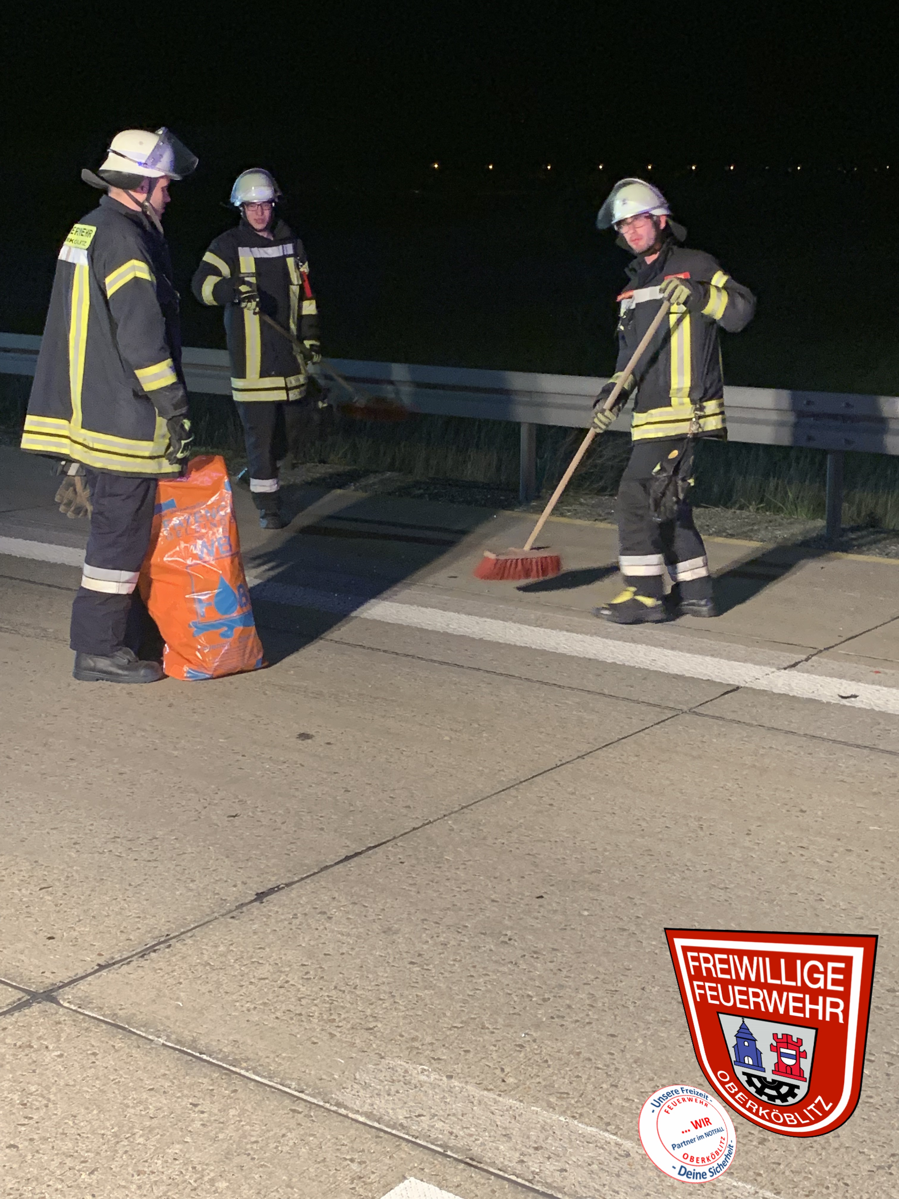 Letzte Nacht wurden wir zu einem schweren Verkehrsunfall zusammen mit den Feuerwehren Oberwildenau, Luhe, Schirmitz und Weiden auf die A93 in Fahrtrichtung Norden alarmiert. Die Meldung lautete VU mit PKW mehrere Personen eingeklemmt. Beim Eintreffen an der Einsatzstelle stellte sich heraus das keine Personen mehr im Fahrzeug eingeklemmt waren. Wir unterstützten die örtlich zuständige Feuerwehr Oberwildenau bei den Reinigungsarbeiten und leuchteten die Unfallstelle mit aus.