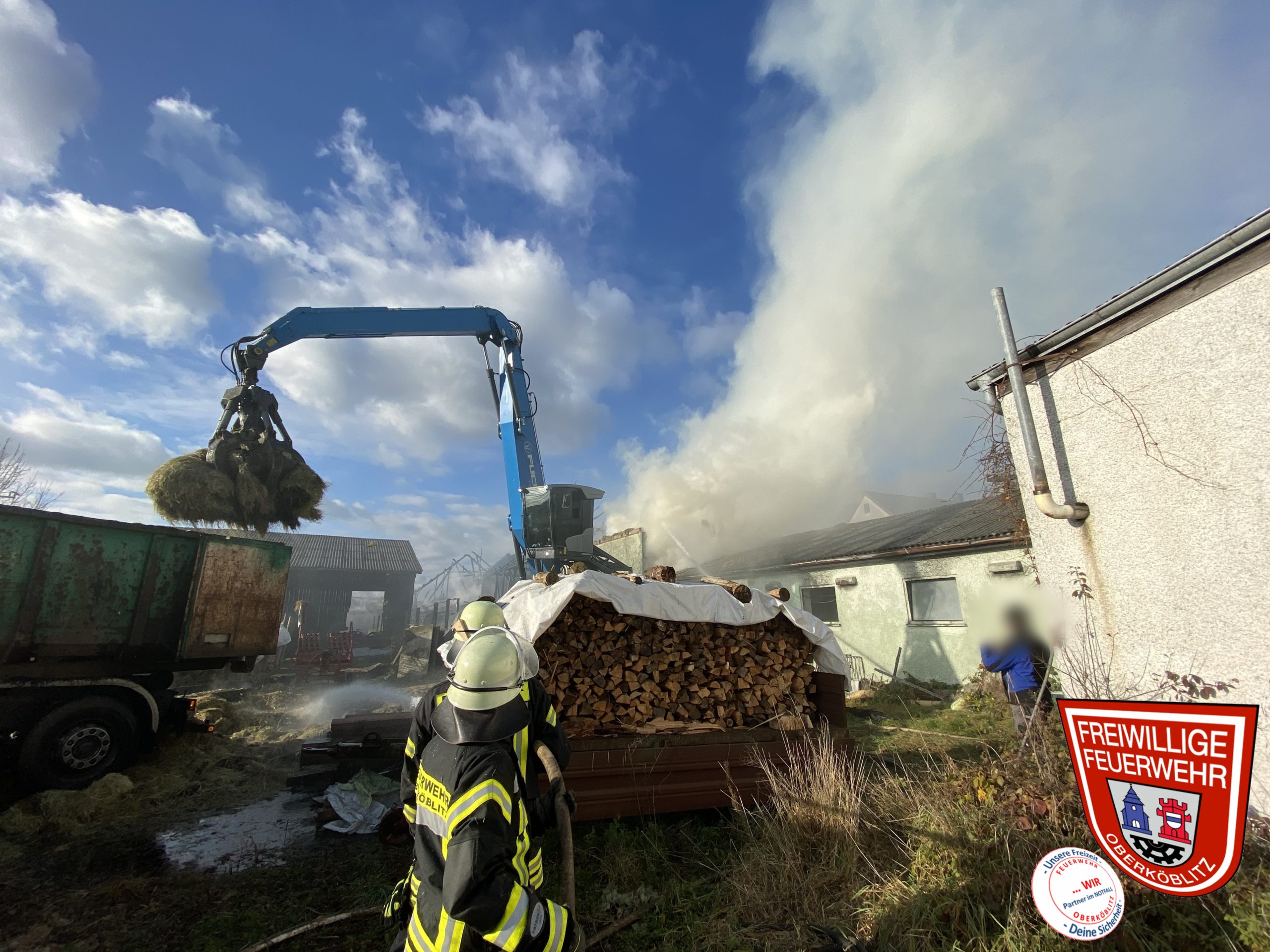 Hierzu setzten wir bis zu 5 Strahlrohre im zugewiesenen Bereich ein. Ebenso war ein Trupp unter Atemschutz im Innenbereich der Stallung eingesetzt, um auch hier eine Ausbreitung zwischen den zusammengebauten Gebäudeteilen eines Anwesens zu verhindern.