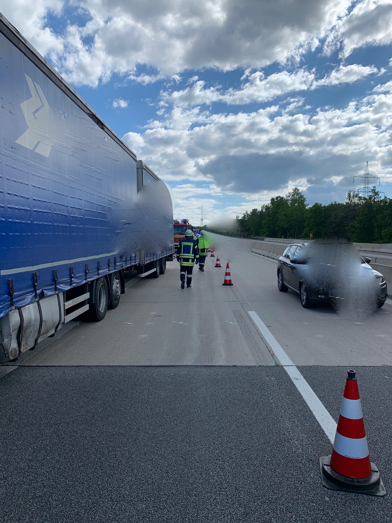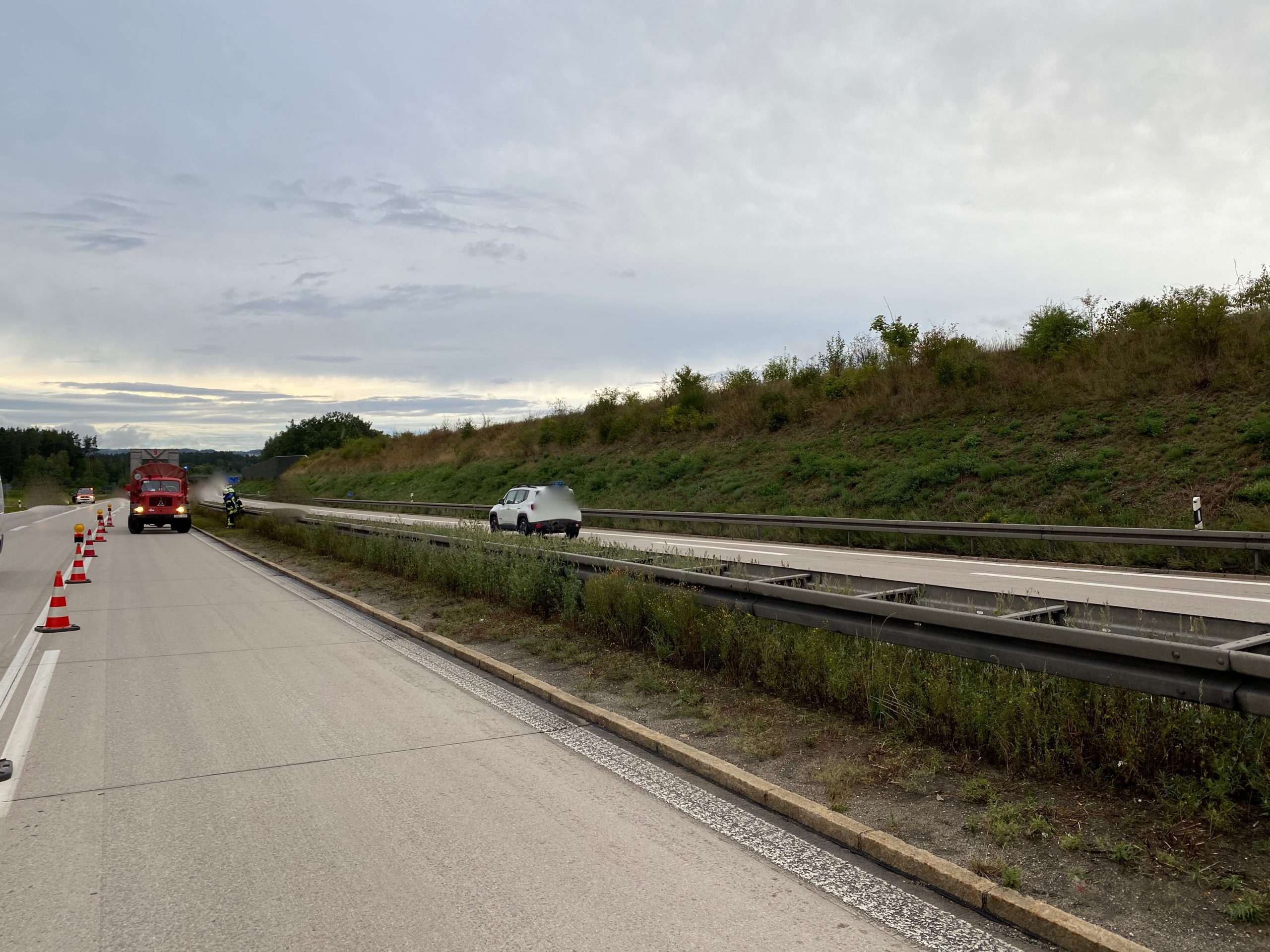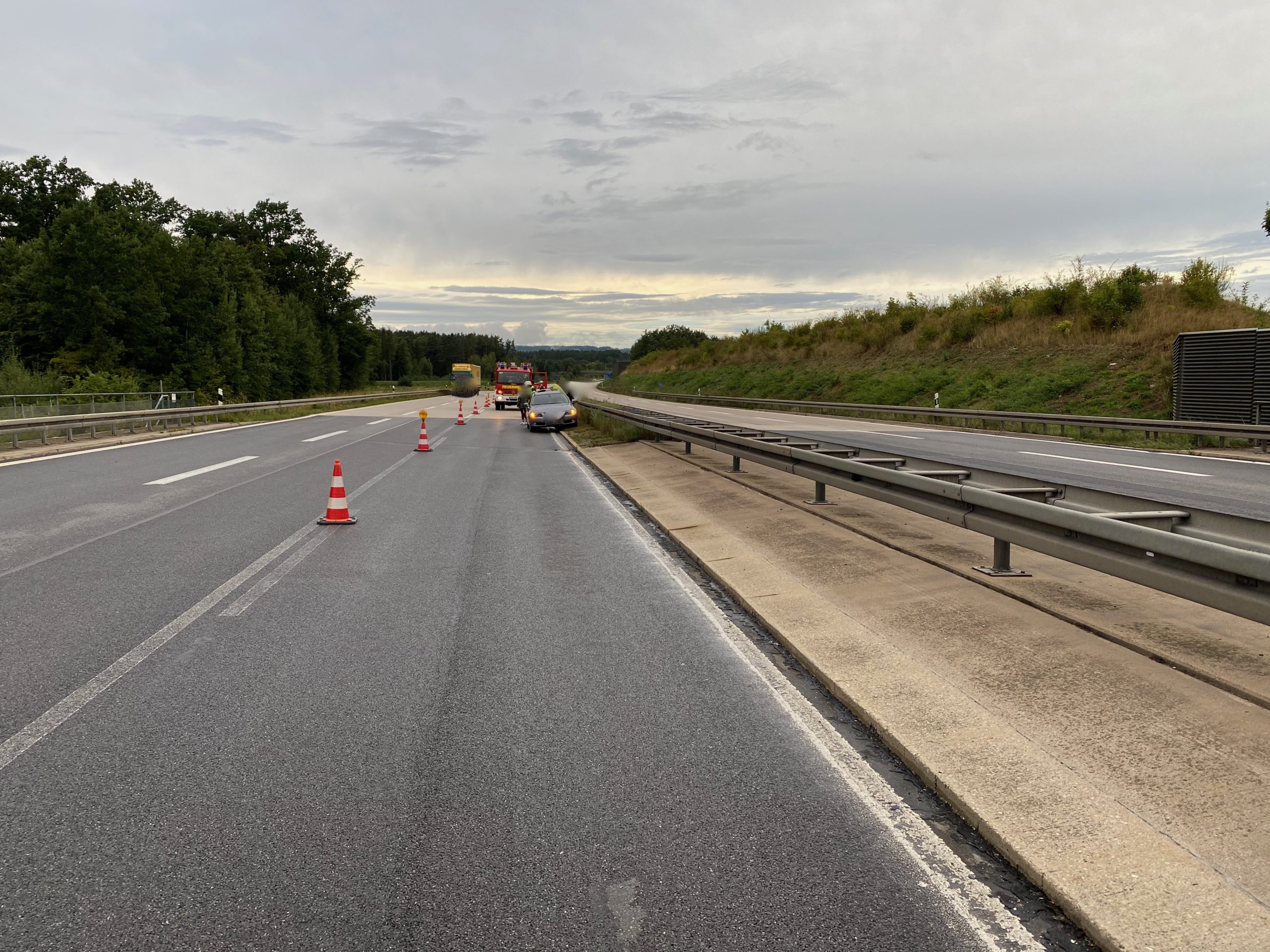 Wir unterstützten die zuständige Feuerwehr Pfreimd bei den Rettungsarbeiten und sperrten solange die Autobahn in Fahrtrichtung Süden.
