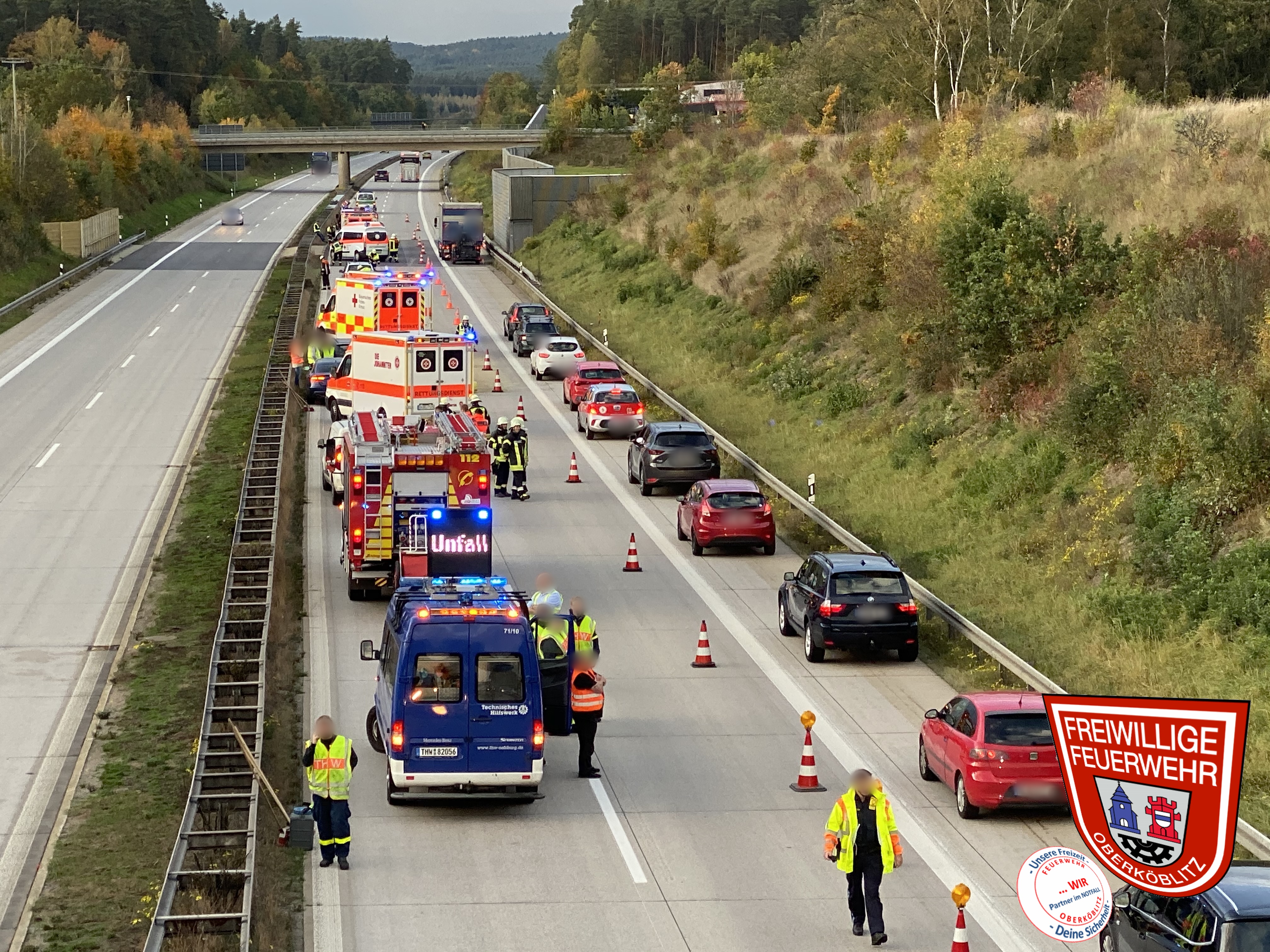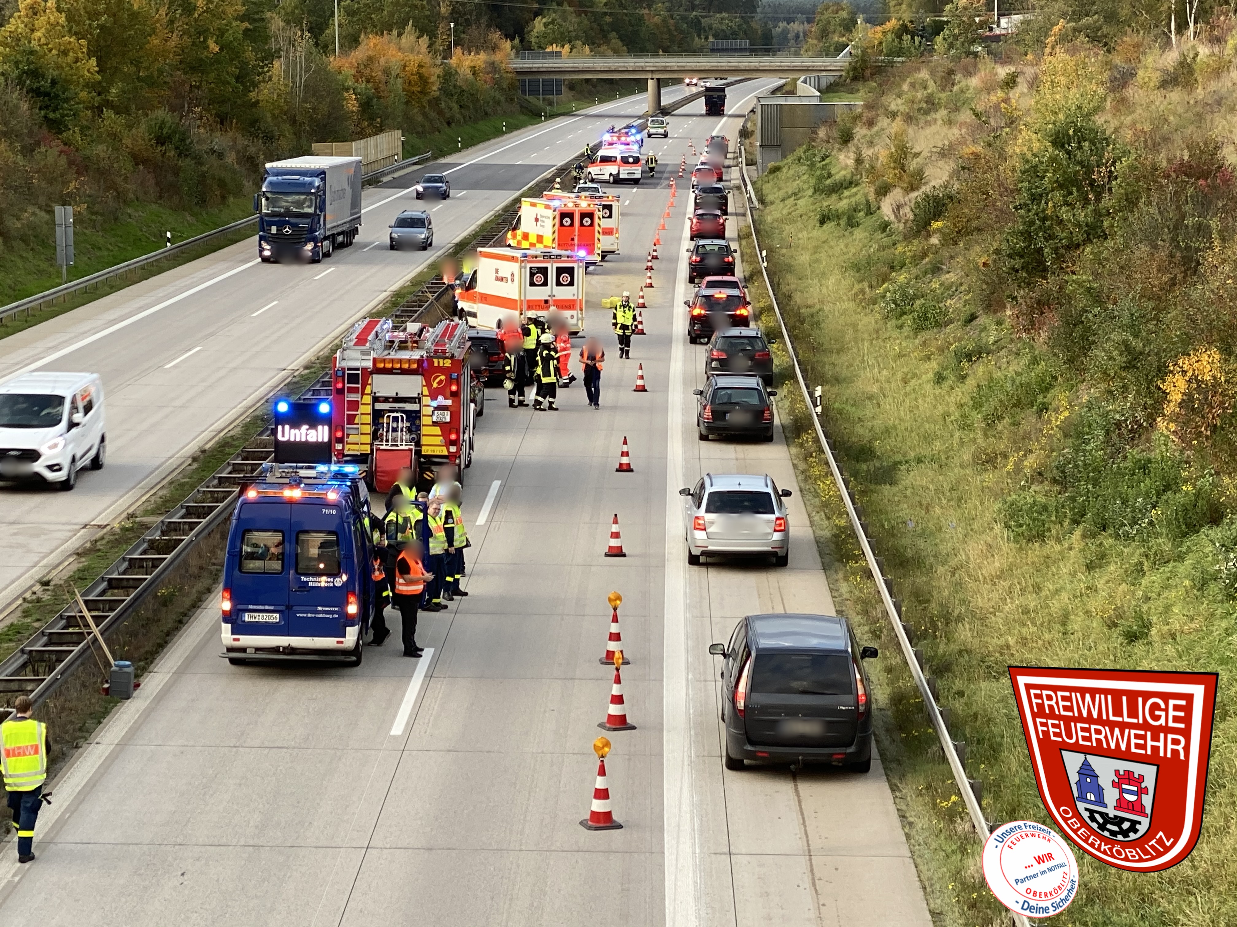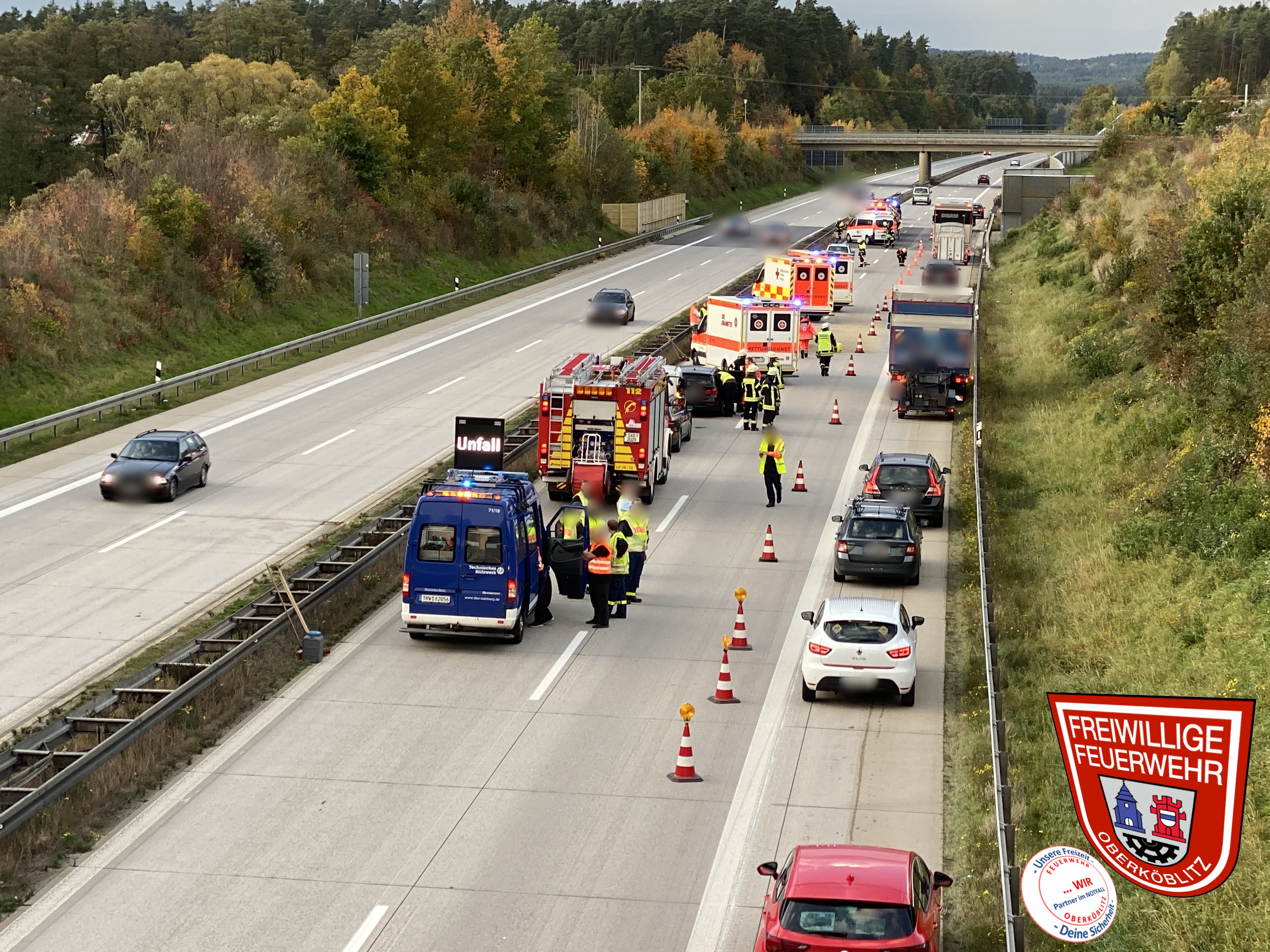 THL I VU A93 zwischen Wernberg-Köblitz u. Luhe-Wildenau mit mehreren Fahrzeugen