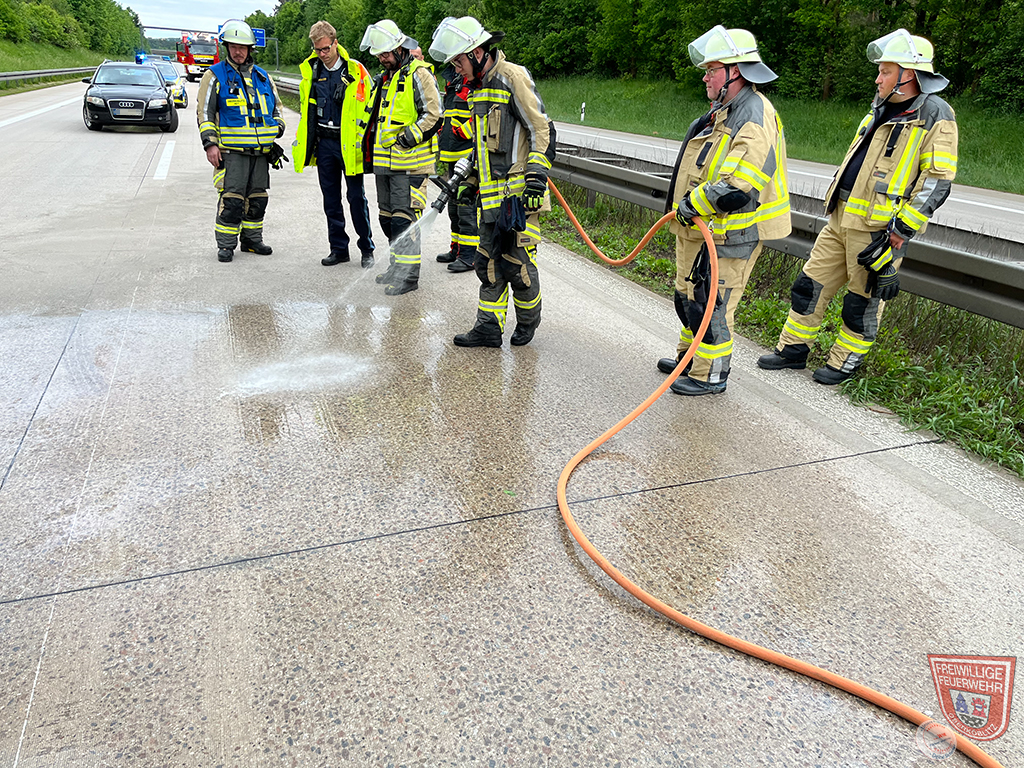 Durch einen Motorschaden wurde in Fahrtrichtung Hof, durch ein Kraftfahrzeug eine Ölspur verursacht. Wir sicherten die Gefahrenstelle bis zum Eintreffen der Autobahnmeisterei ab.