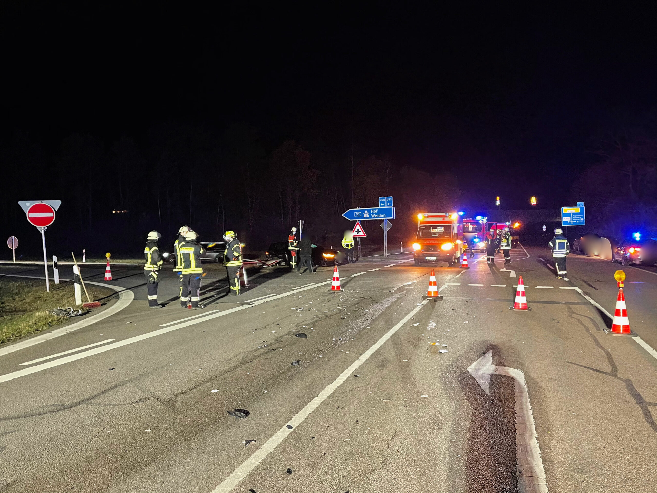 Die Autobahn war dadurch in Fahrtrichtung Regensburg stark verschmutzt und blockiert. Deshalb musste die Autobahn ab der Anschlussstelle Wernberg-Köblitz für den Verkehr gesperrt und dieser ausgeleitet werden. Hierzu wurde durch uns die Einfahrt zu A93 gesperrt und für die Ausleitung die FF Luhe mit VSA nachalarmiert.