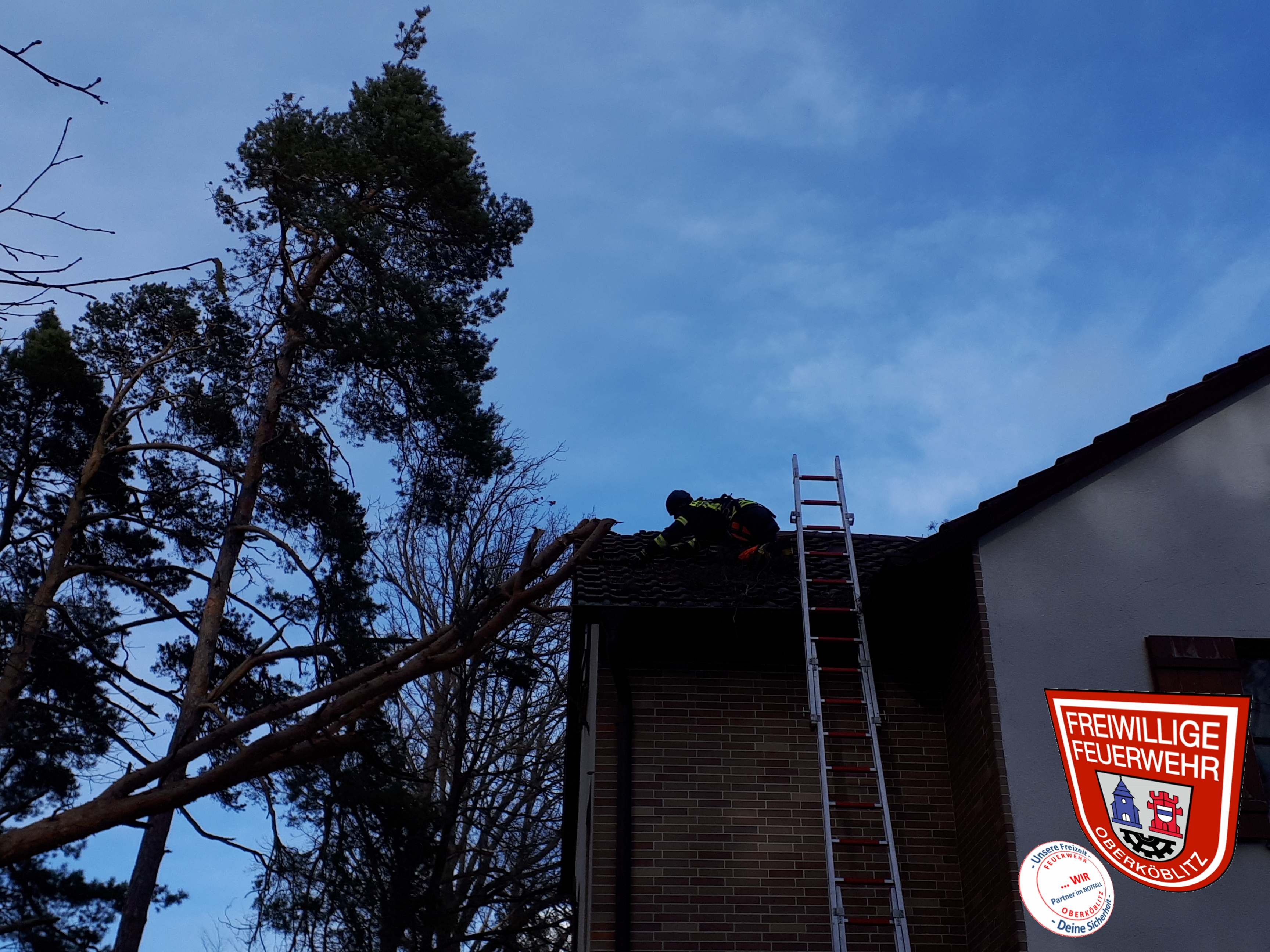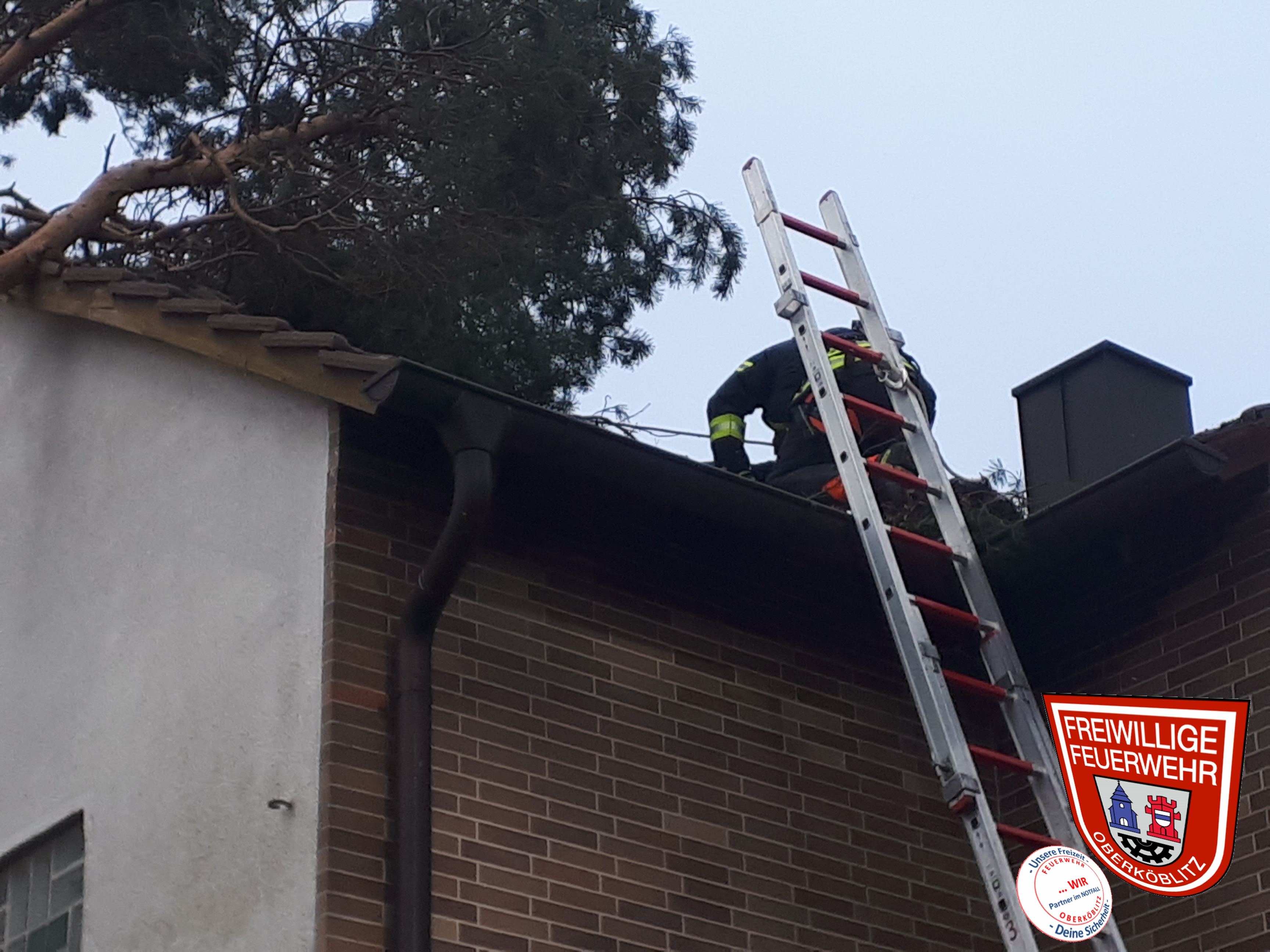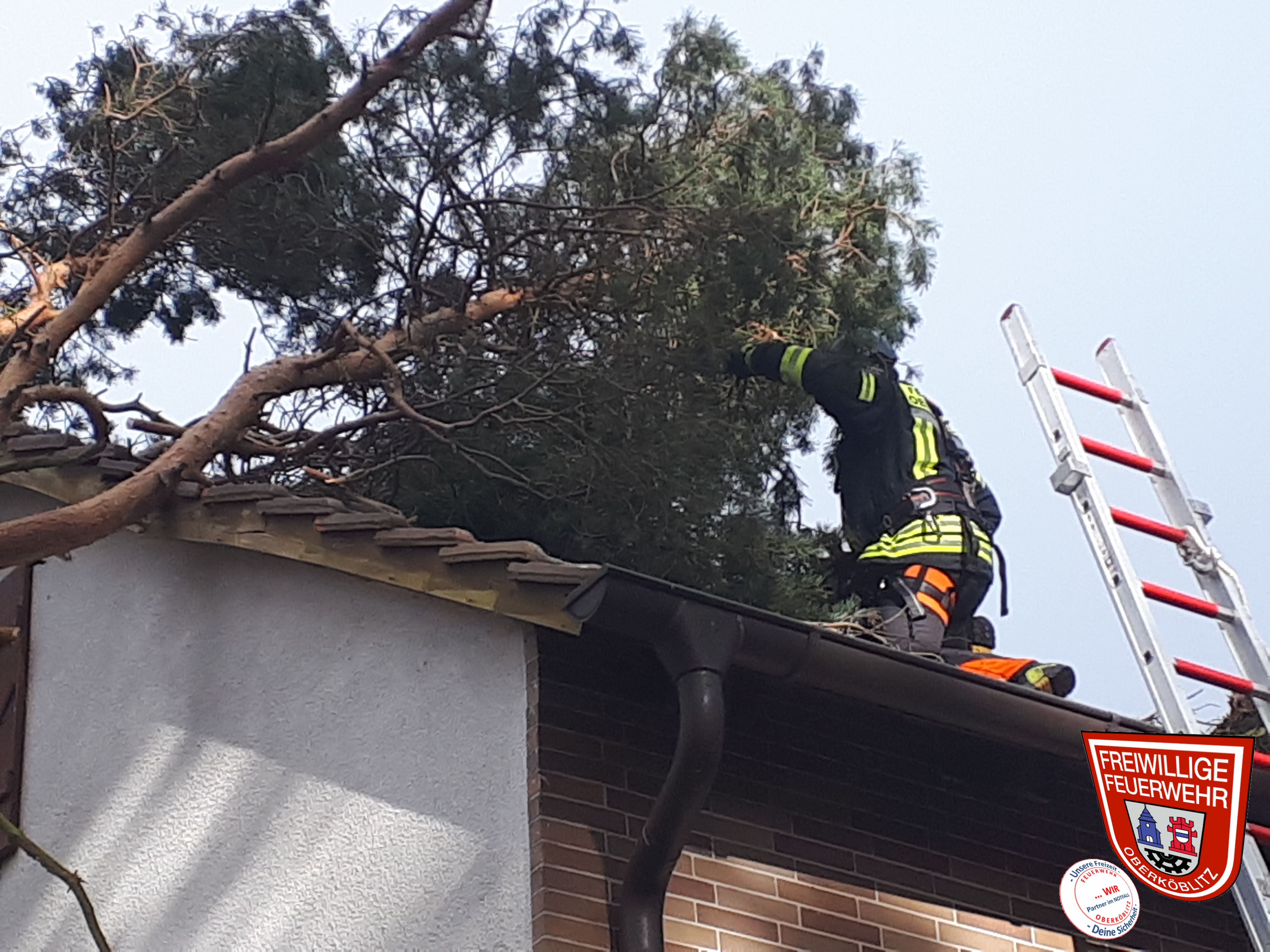 Im Verlauf des Einsatzes musste das Dach des Gartenhauses abgedeckt und geöffnet werden, um die darunter liegenden Glutnester abzulöschen. Dazu musste auch eine Vertäfelung, die an sich an der Giebelseite befand, entfernt werden.