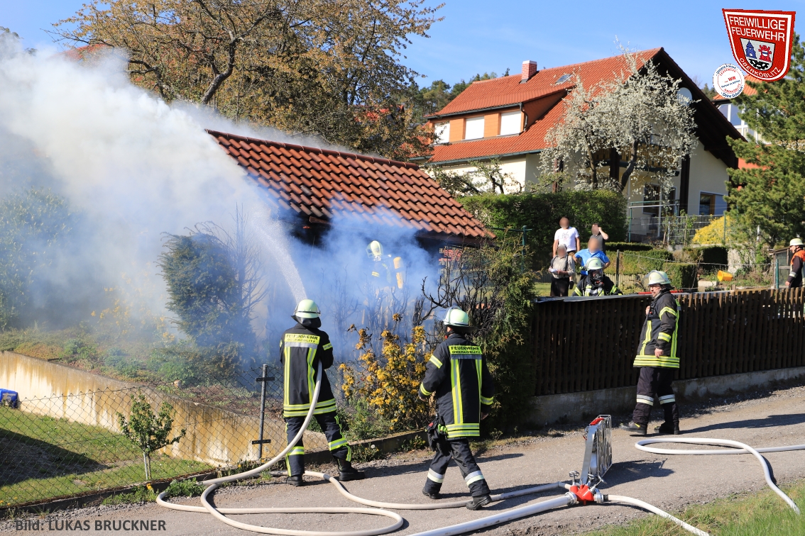 Brand Hecke lautete die Einsatzmeldung, zu der wir am späten Nachmittag nach Oberköblitz gerufen wurden. Bereits auf der Anfahrt rüsteten sich die ersten Atemschutztrupps aus, da die starke Rauchentwicklung weit sichtbar war. Vor Ort stellte sich heraus, dass das Feuer neben der Hecke bereits auf Kompost und eine an der Grundstückgrenze stehende Gartenhütte übergegriffen hatte. Aufgrund der aktuellen Trockenheit bestand auch weiterhin die Gefahr das sich das Feuer weiter ausbreiten würde.