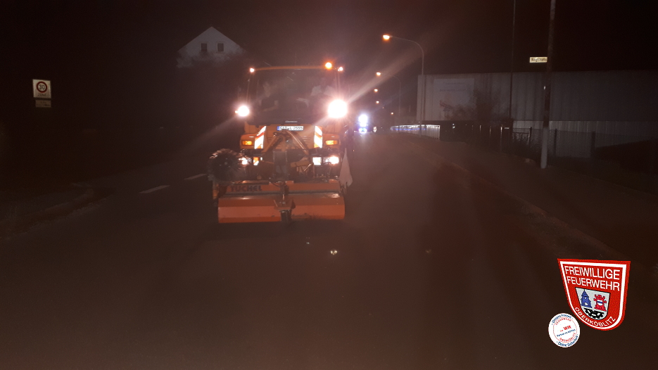 Zu einer Fahrbahnreinigung wurden wir im laufe des späten Abend nach Unterköblitz alarmiert. Im Verlauf der Nürnberger Straße im Kreuzungsbereich zur Ringstraße waren Metallsplitter auf der Fahrbahn verteilt. Wir sperrten den Bereich auf eine Länge von etwa 200m für den Verkehr und leuchteten diesen aus.