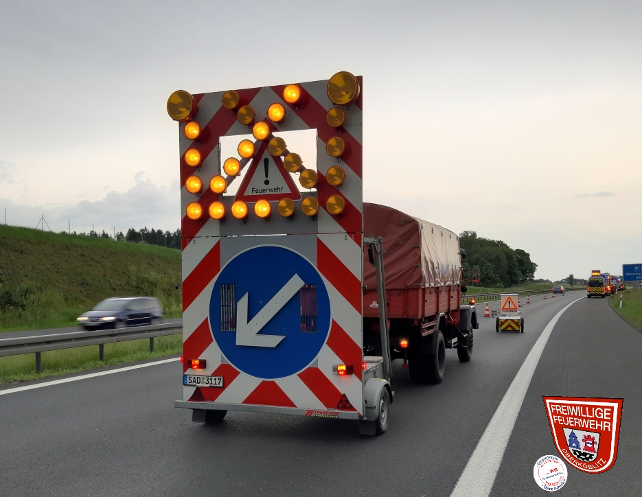 Wir wurden zusammen mit der FF Wernberg mit unserem VSA auf die A6 zwischen Wernberg-Ost und Leuchtenberg alarmiert. Hier hatte sich ein Unfall mit einem Wohnanhänger ereignet.Unsere Aufgabe bestand darin die A6 zwischen den Anschlussstellen Wernberg-Ost und Leuchtenberg mit unserem VSA während der Bergungsarbeiten komplett zu sperren. Die Sperrung der Auffahrt in Wernberg-Ost wurde von der FF Losau-Schiltern übernommen.