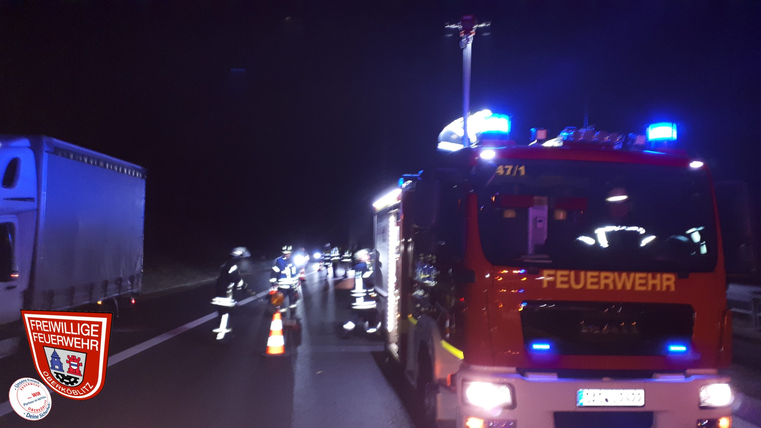 Am Dienstag Abend wurden wir von der ILS Amberg auf die A6 alarmiert, hier hatte sich zwischen dem Autobahnkreuz und Wernberg-Ost in Richtung CZ ein Verkehrsunfall zwischen einem PKW und LKW zugetragen. Wir sicherten die Unfallstelle ab und übernahmen die Fahrbahnreinigung.